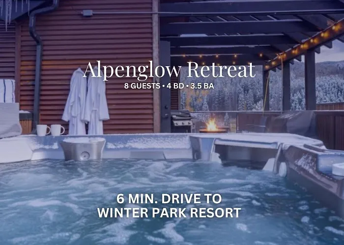 The 4-bedroom Alpenglow Retreat Winter Park villa is located approximately 4 km from Winter Park Resort and provides a hot tub. The property includes parking and a patio with views of the mountain.